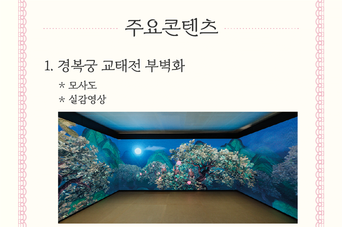 - 전시: 왕비의 생활상 재현, 건순각 내부 공개, 부벽화 모사도 전시, 실감 영상 상영