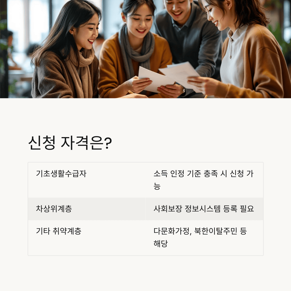| 기초생활수급자 | 소득 인정 기준 충족 시 신청 가능 |